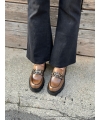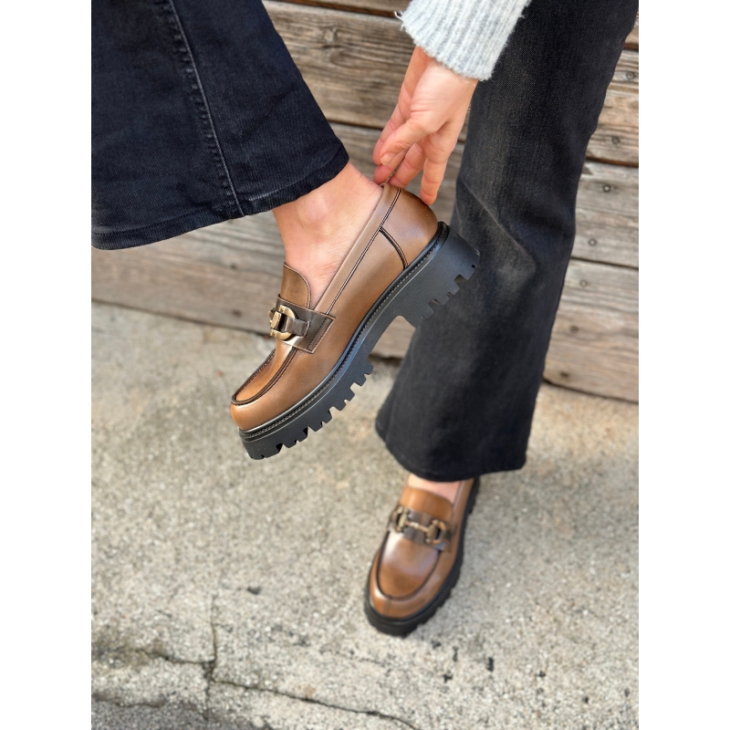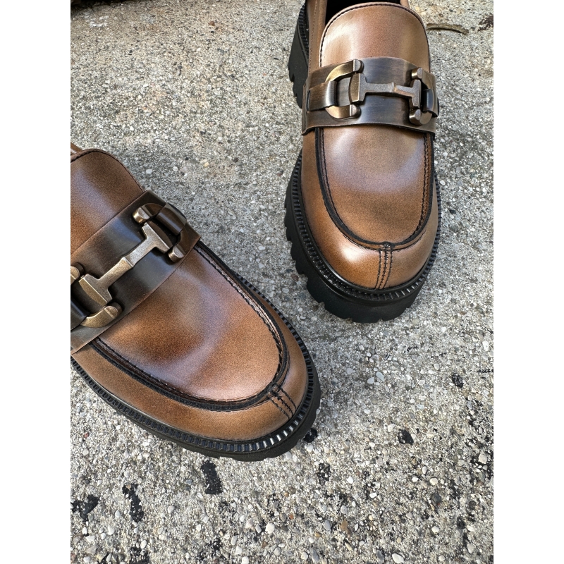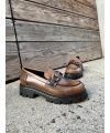 Shiny brown vegan moccasin with clamp