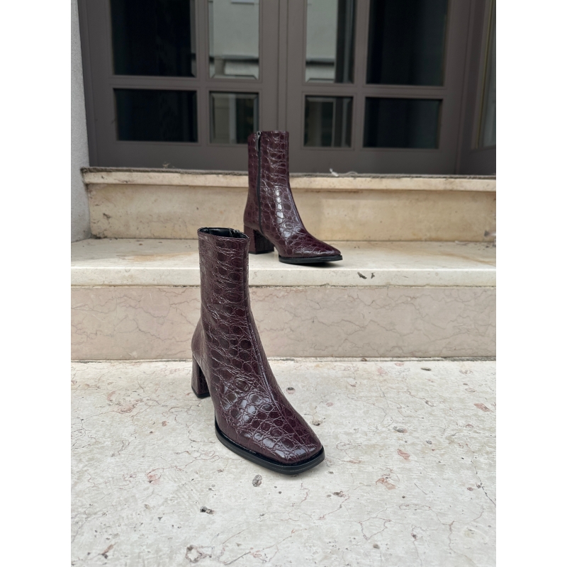 Women's Shoes Shiny Over-the-Ankle Ankle Boots with Square Toe
