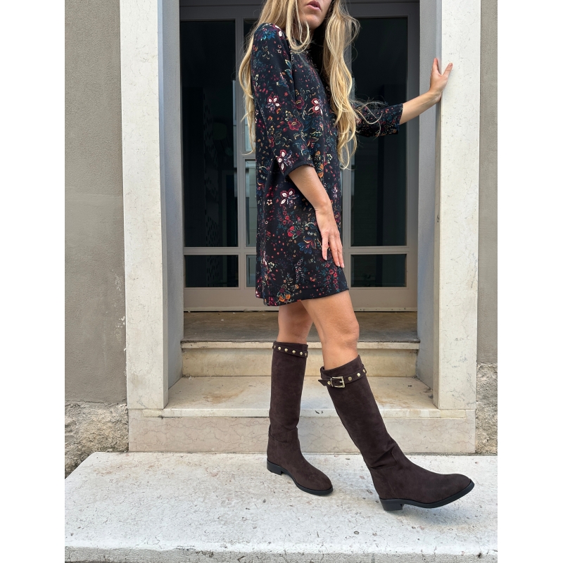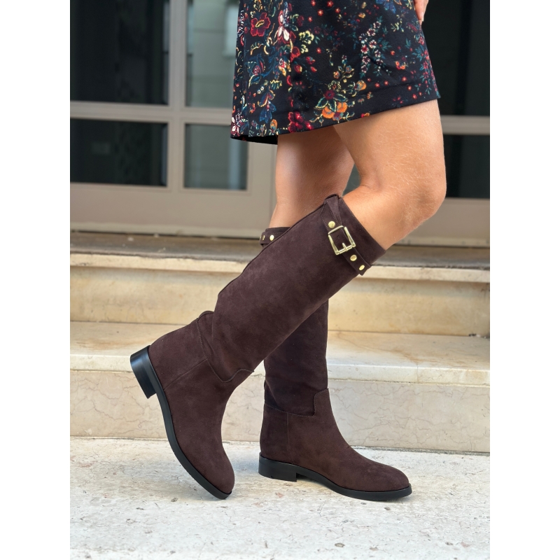 Water-resistant upper in dark brown chocolate suede-effect microfiber