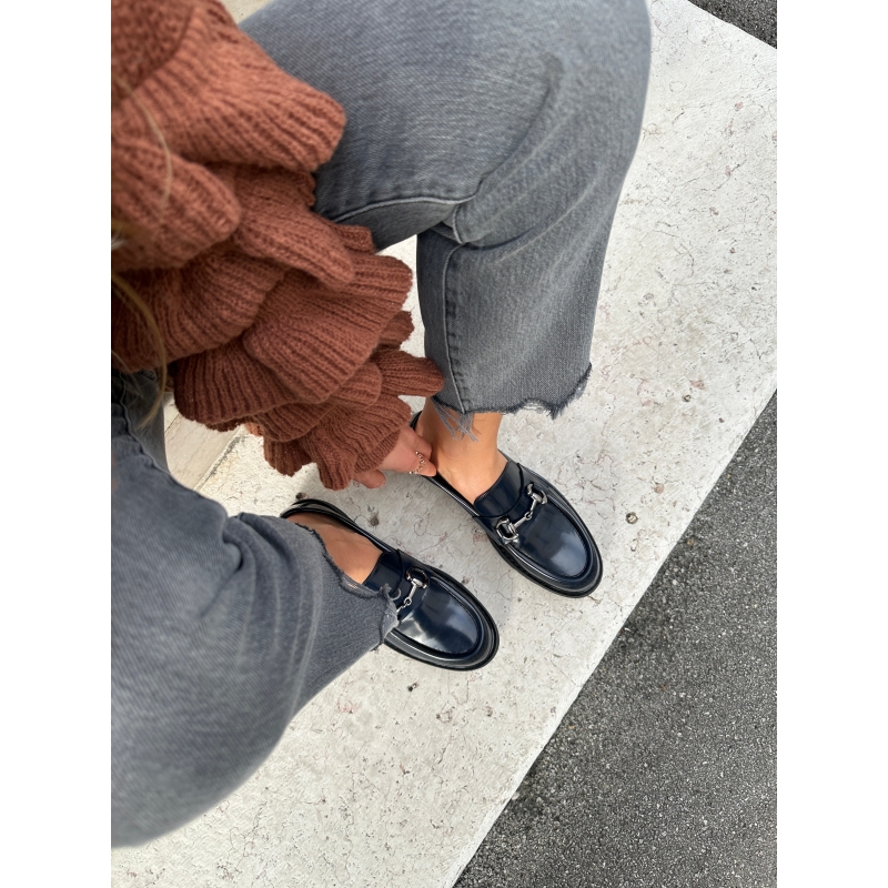 Vegan moccasin with silver accessory