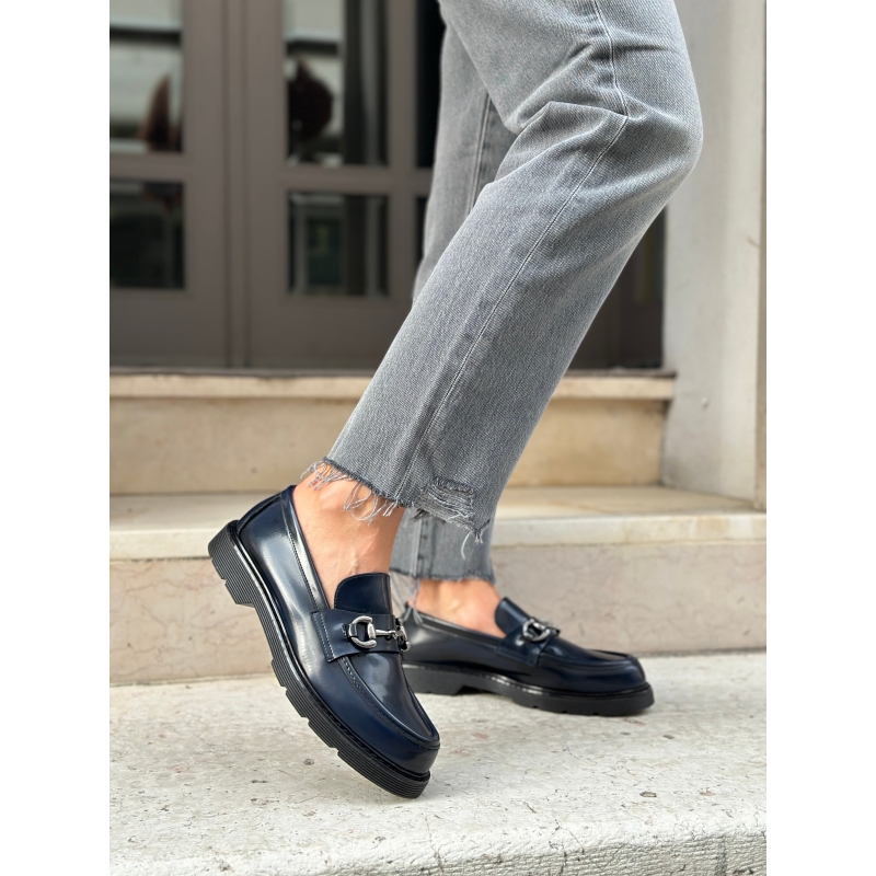 Shiny blue vegan loafer