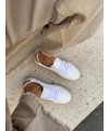 Eco-friendly women's white sneakers with beige soles