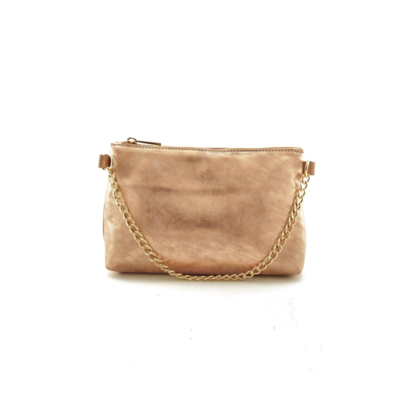 Bolso de ceremonia vegano con cierre de cremallera y cadena dorada.