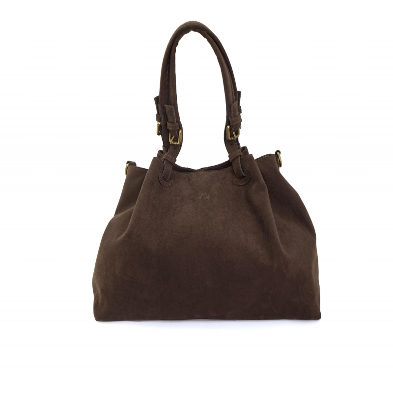 Parte superior en microfibra suave efecto ante en color marrón chocolate y marrón oscuro.