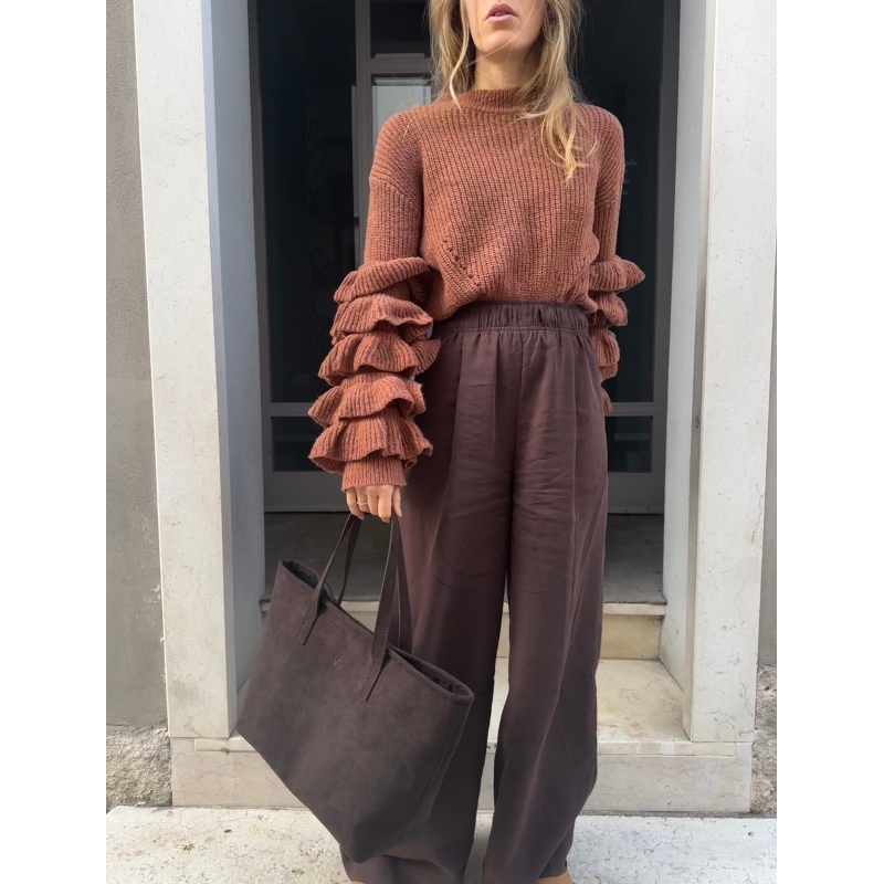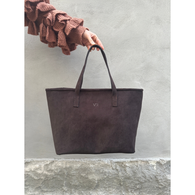Parte superior de microfibra suave color chocolate con efecto ante.