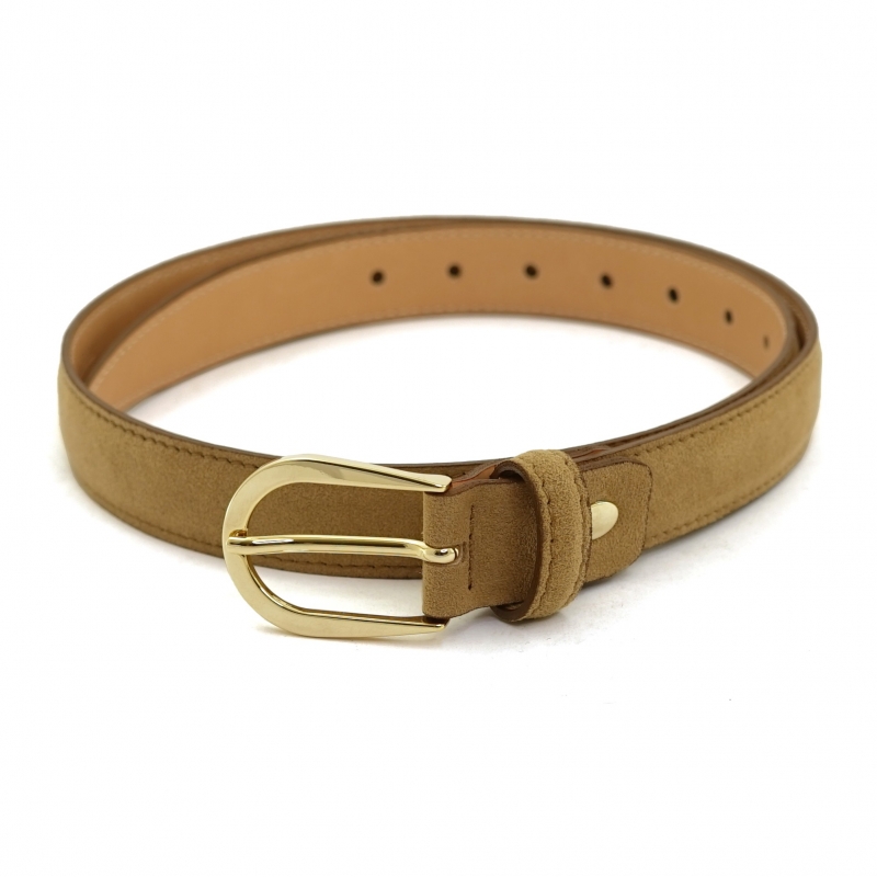 Modelo con hebilla en color dorado brillante y trabilla única. Longitud ajustable