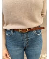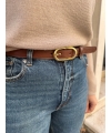 Elegante cinturón fino para mujer en color cuero.