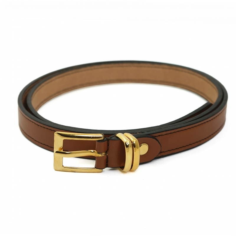 Cinturón fino ecológico color piel con hebilla cuadrada dorada y doble trabilla de metal dorado