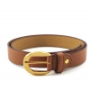 Cinturón ecológico de piel teñida con hebilla redondeada dorada.