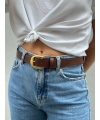 Cinturón ecológico de piel teñida con hebilla redondeada dorada.