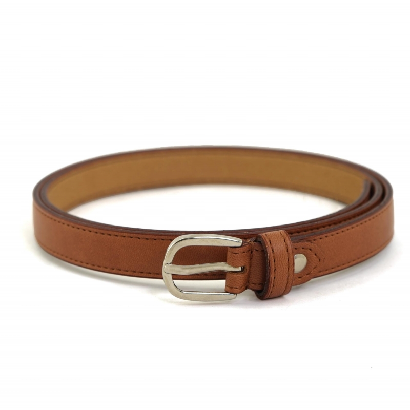 Cinturón fino, sin cuero, de color tostado.
