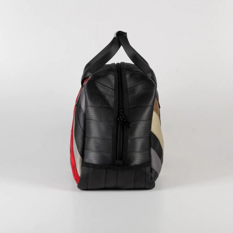 Empeine elaborado artesanalmente con combinaciones de materiales: cinturones de seguridad de coche, correas de carga de avión y air campers