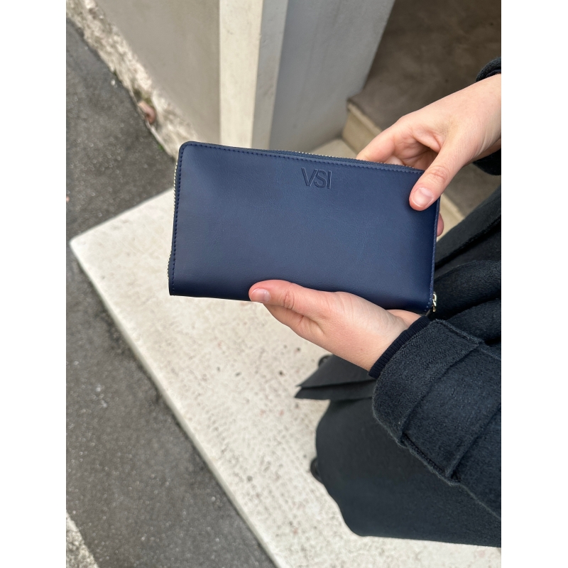 Cartera mujer acordeón liso vegano azul