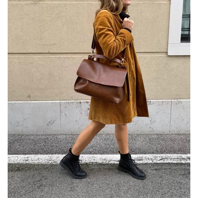 Ho acquistato questa borsa nella variante marrone scuro, e me ne sono innamorata a prima vista! Il modello è classico, ma le frange davanti danno un tocco di modernità. Adatta per ogni occasione (lavoro, viaggi, tempo libero), è morbida e leggera - a differenza della vera pelle che spesso risulta rigida e pesante. Le dimensioni sono ideali: né troppo grande, né troppo piccola. Il tascone dietro, poi, è comodissimo!