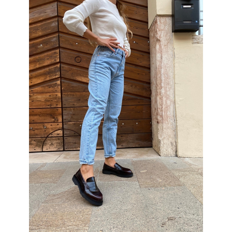 Mocasín vegano rojo burdeos