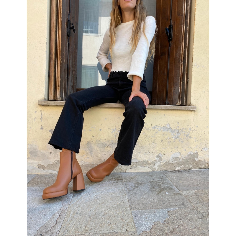 Botín con cremallera lateral y puntera cuadrada