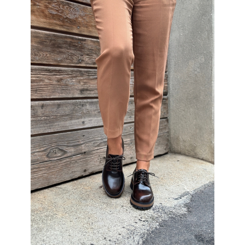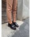 Oxfords de mujer brillantes con suela gruesa.