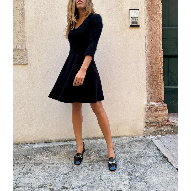Parte superior de microfibra efecto charol negro, resistente al agua.