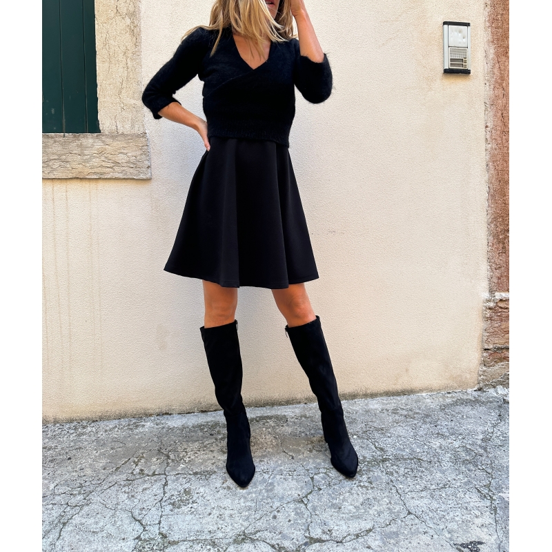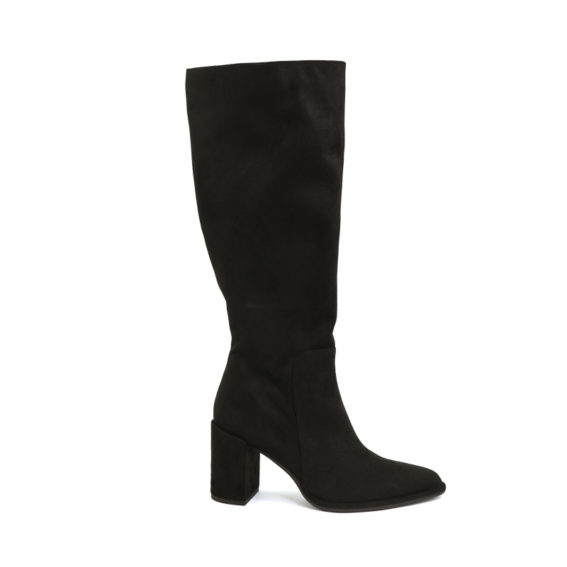 Bota por debajo de la rodilla vegana negra con tacón ancho