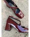 Modelo con puntera cuadrada y doble tira trenzada en el empeine