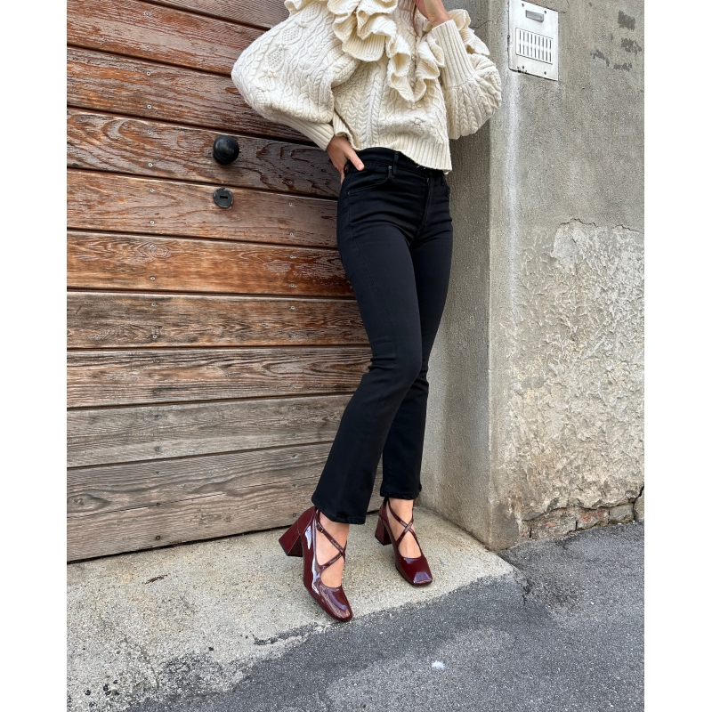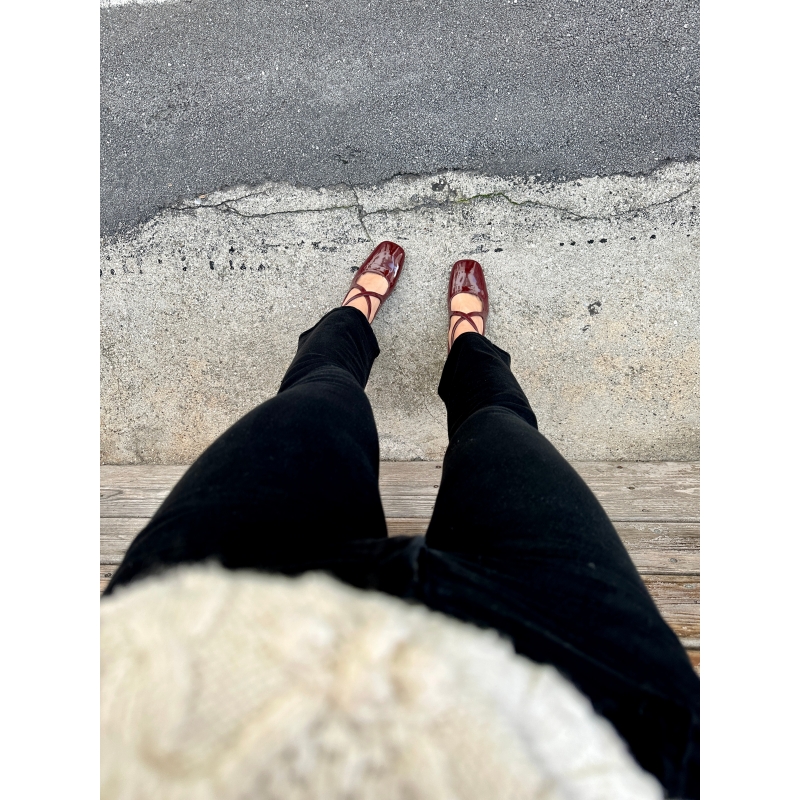 Parte superior de microfibra de alta calidad con efecto pintado en color burdeos.