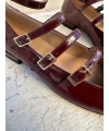 Modelo con puntera cuadrada, triple tira en el empeine y tira en el tobillo