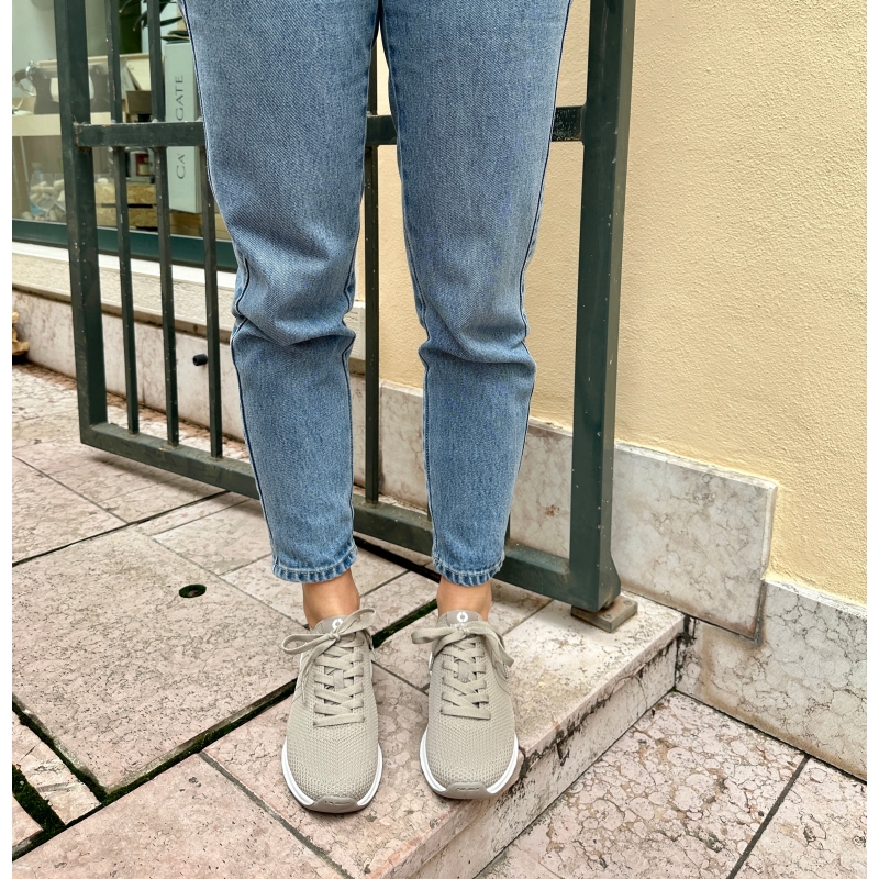 Modelo con ajuste elástico de punto y cordones ajustables.