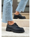 Zapatos de mujer brillantes con cordones y suela gruesa.