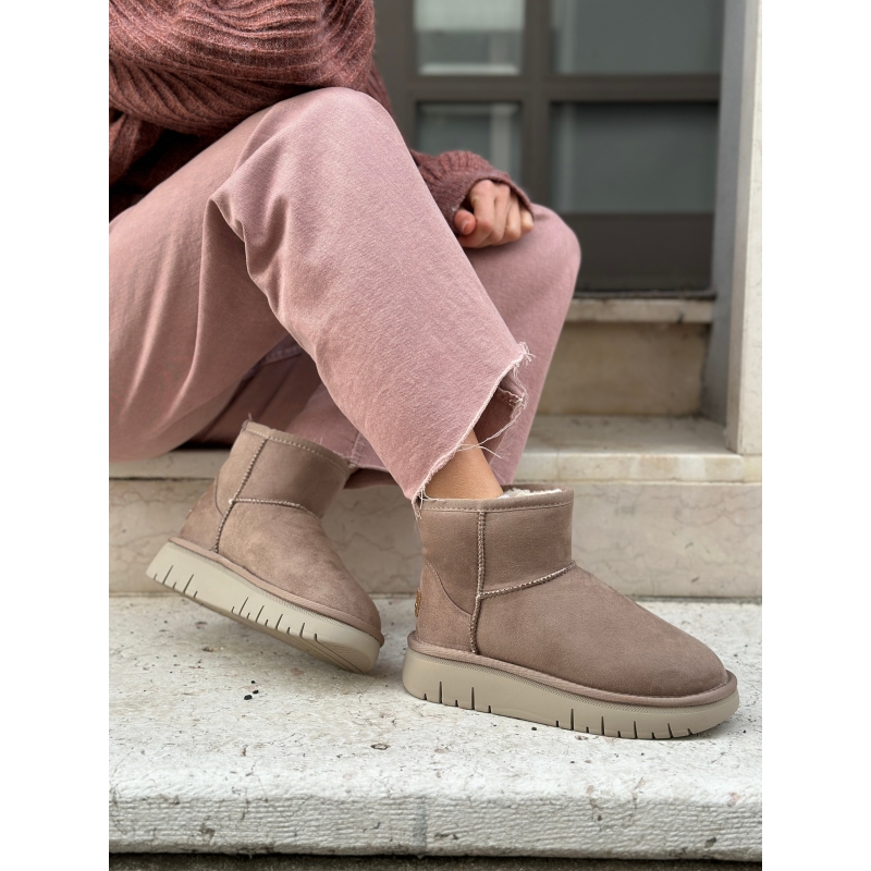 Botines gruesos de felpa beige acolchados con pelo sintético
