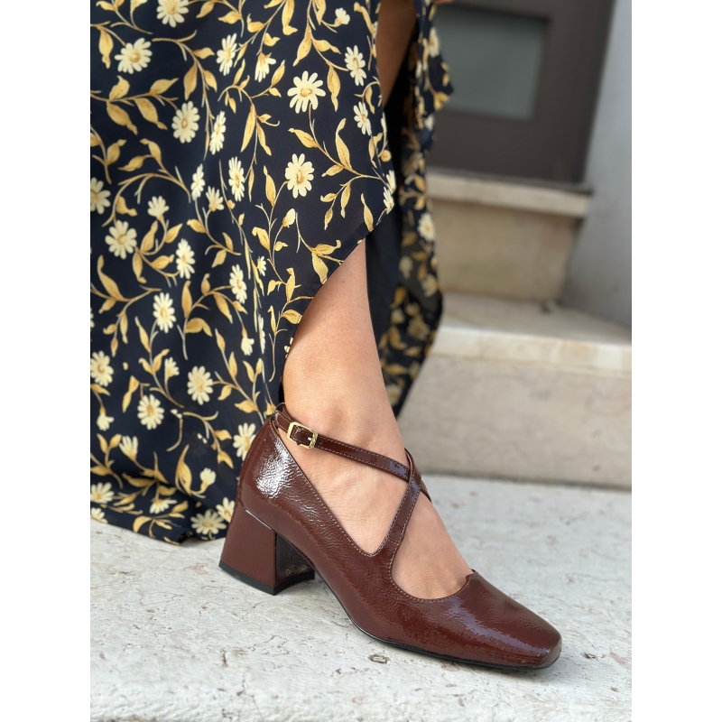 Zapatos veganos con tacón ancho y puntera cerrada.