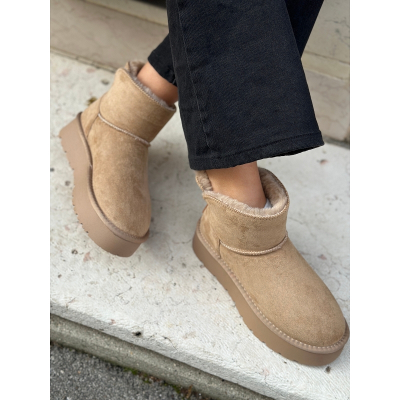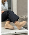 Botines gruesos de felpa beige acolchados con pelo sintético