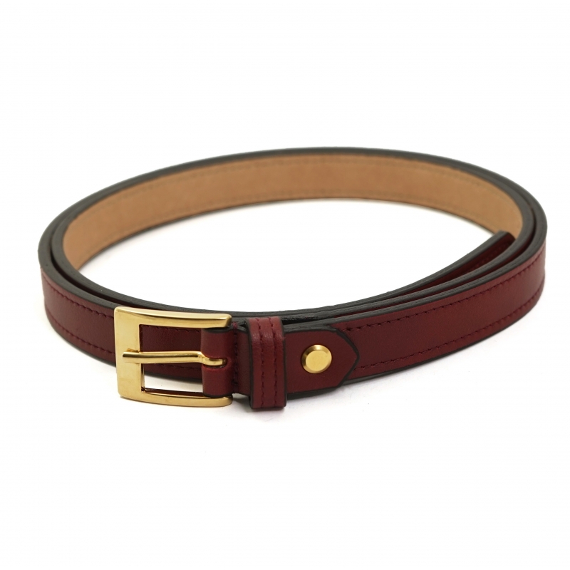 Cinturón ecológico fino rojo oscuro con hebilla cuadrada dorada