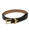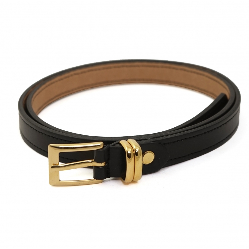 Cinturón fino ecológico negro con hebilla cuadrada dorada y doble trabilla metálica dorada