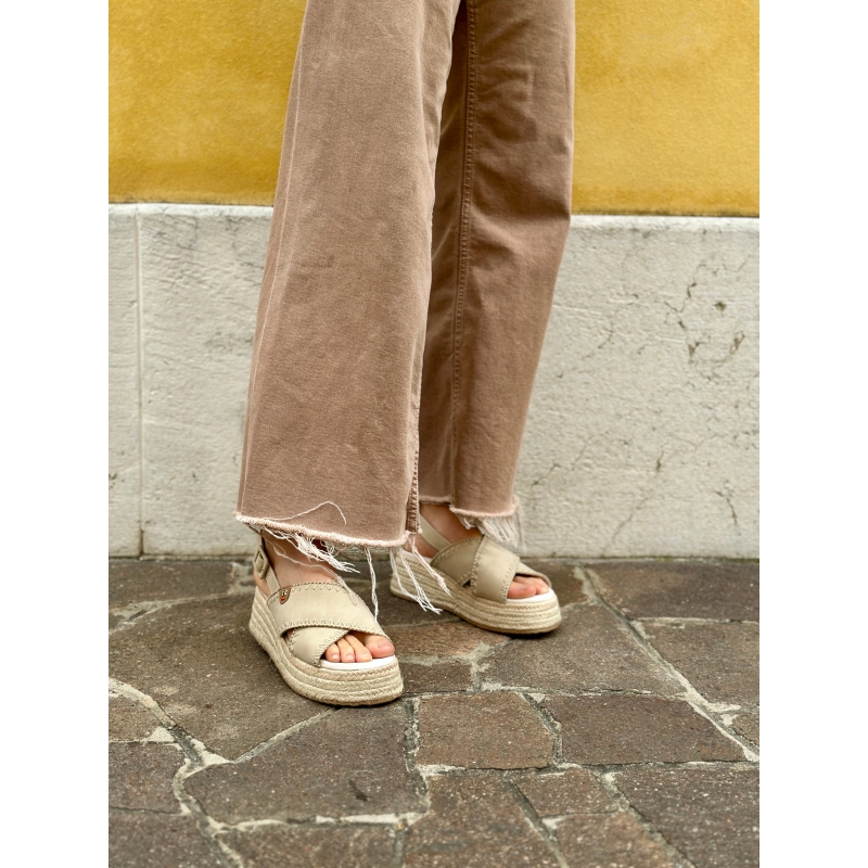 Modelo slingback con tiras cruzadas y tira ajustable en el talón.