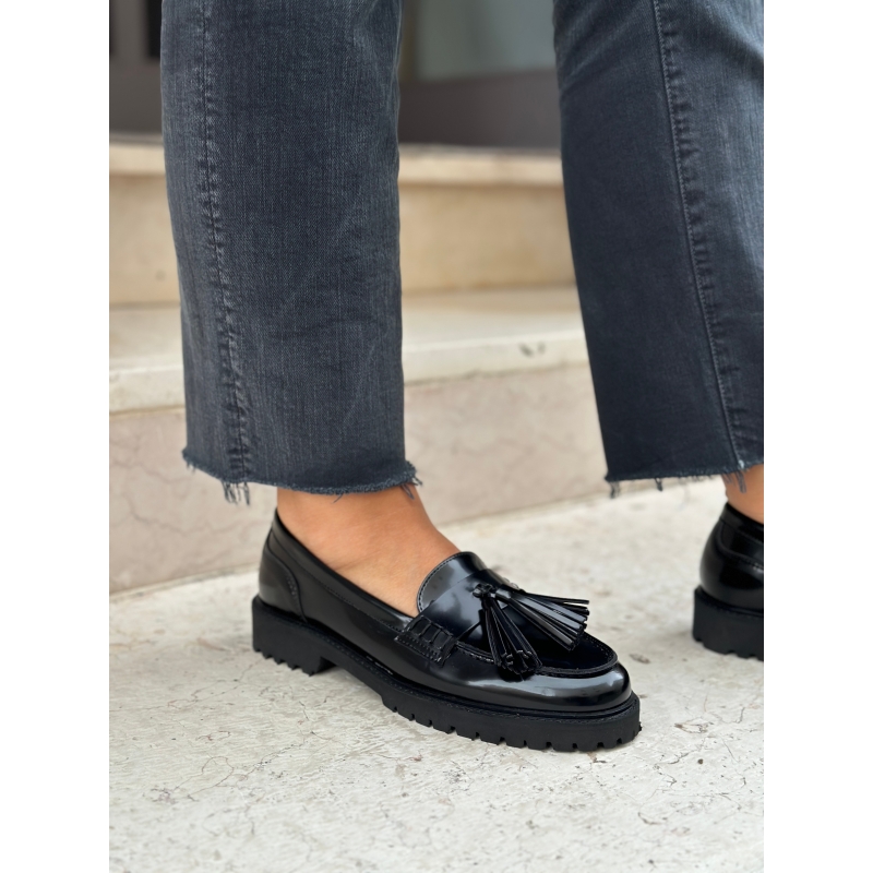 Mocasines veganos con borlas y suela gruesa