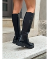 Bota vegana negra hasta la pantorrilla para mujer con cremallera lateral completa