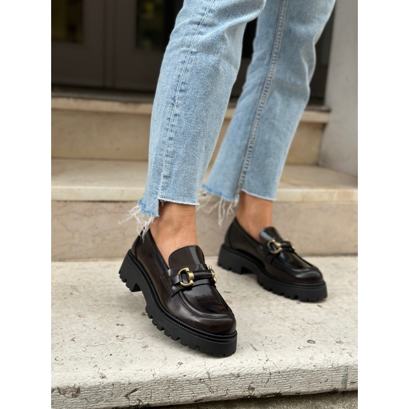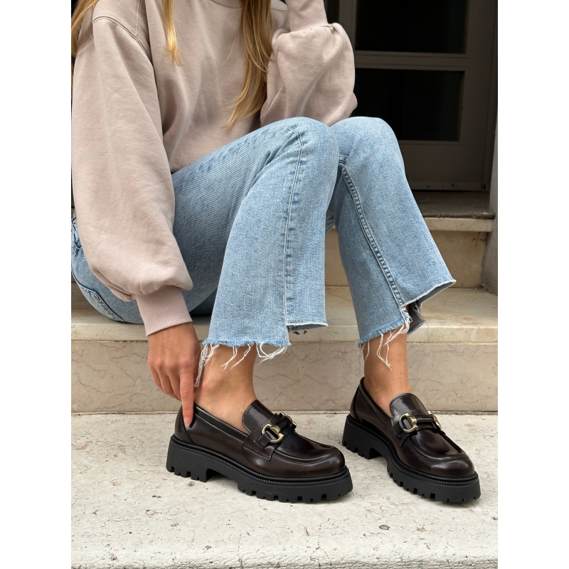 Mocasín vegano marrón oscuro para mujer con suela gruesa