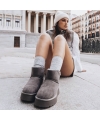 Botines gruesos de felpa gris oscuro con acolchado de piel sintética