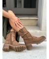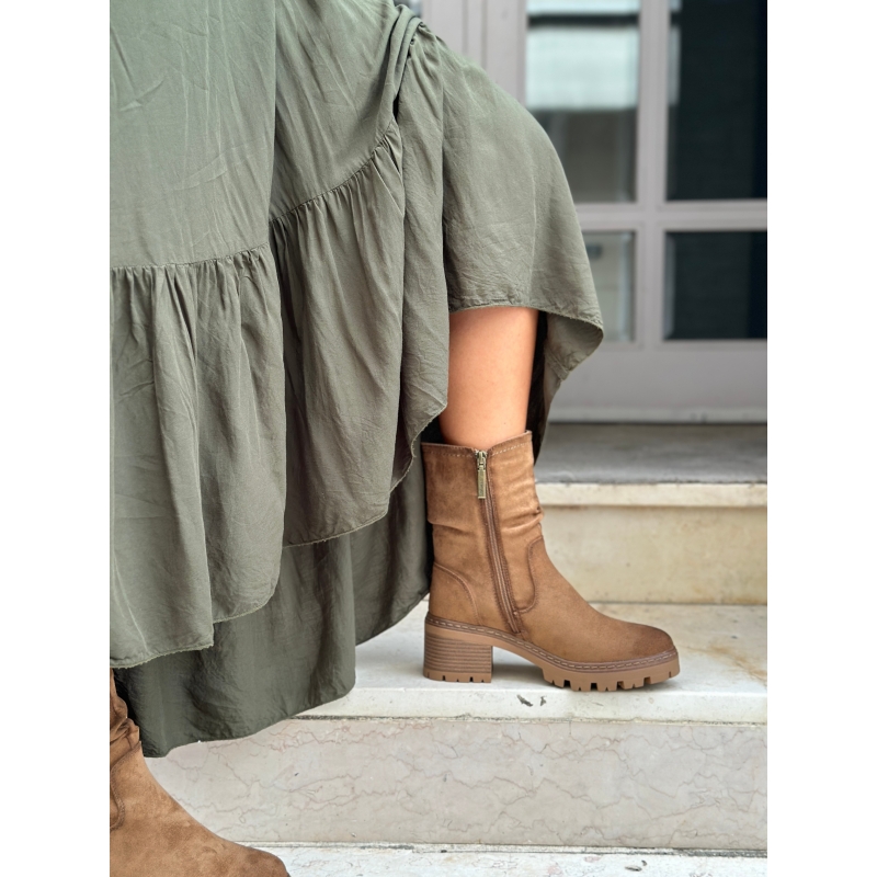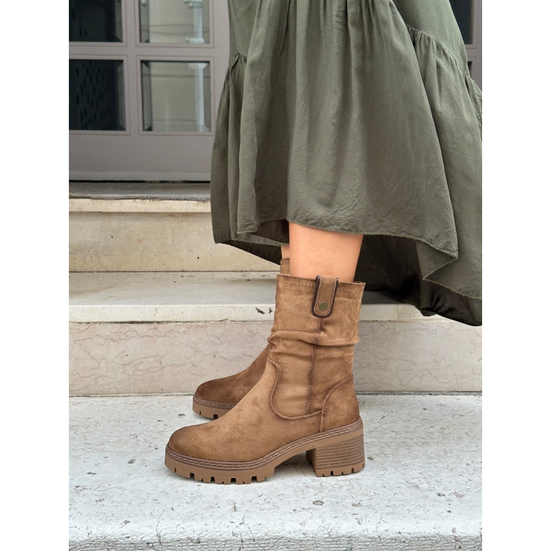 Parte superior de microfibra suave efecto ante en tono color cuero.