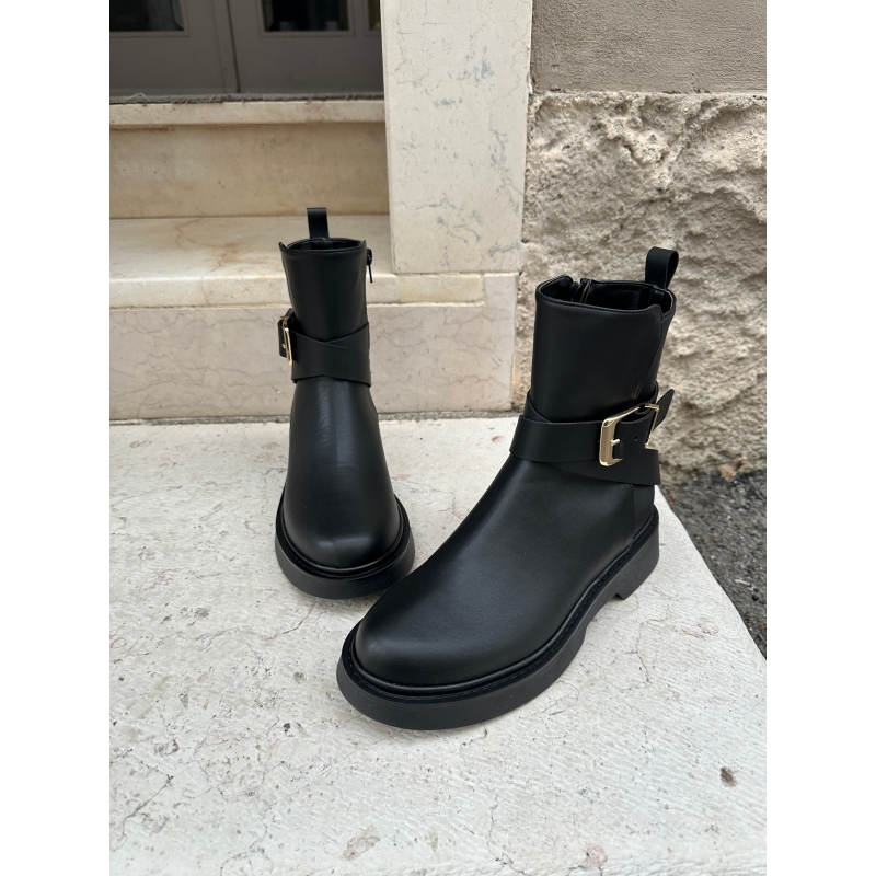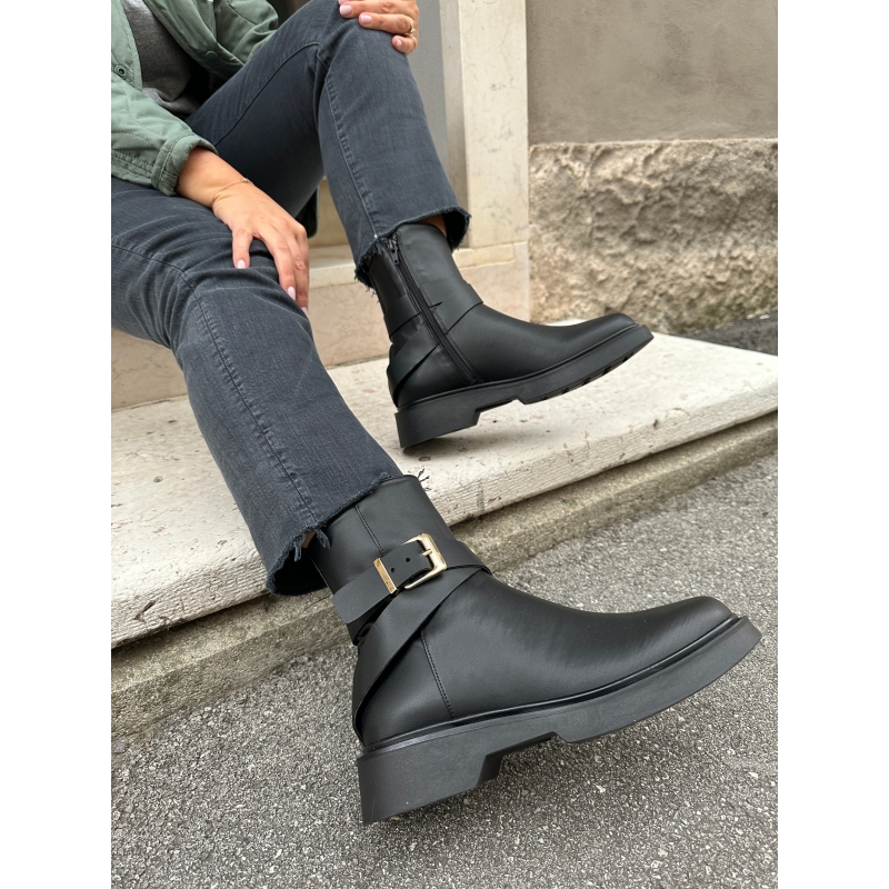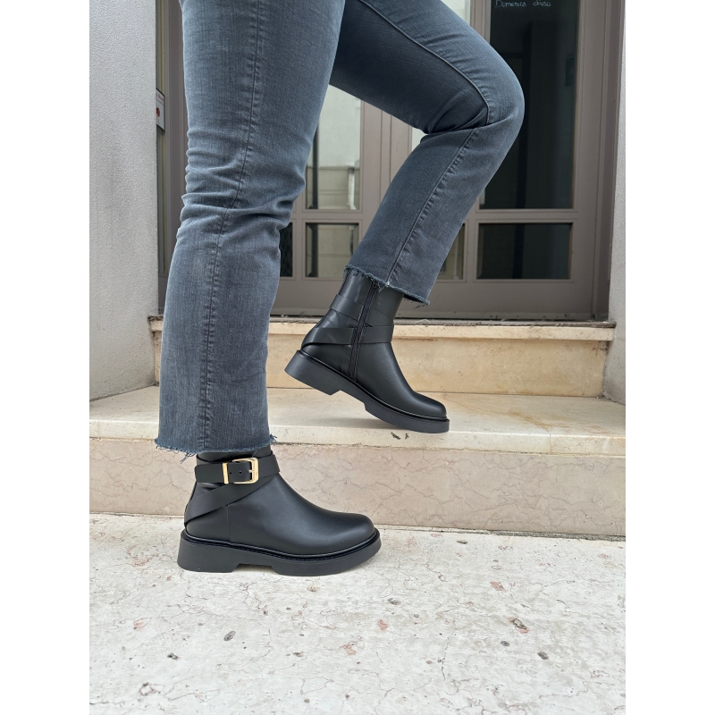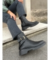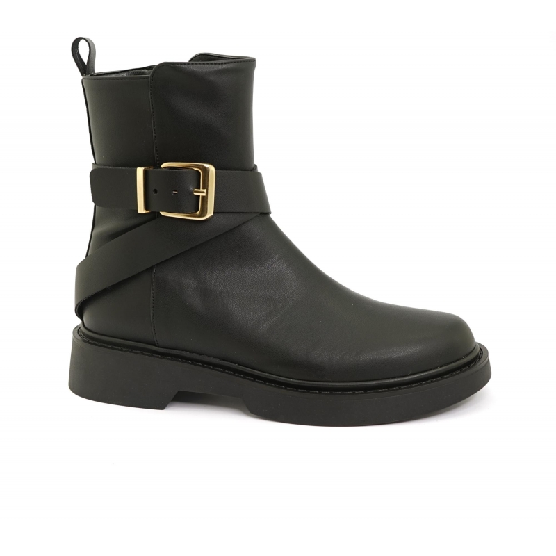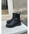 Anfibio resistente al agua con cremallera en el interior, detalle de hebilla.