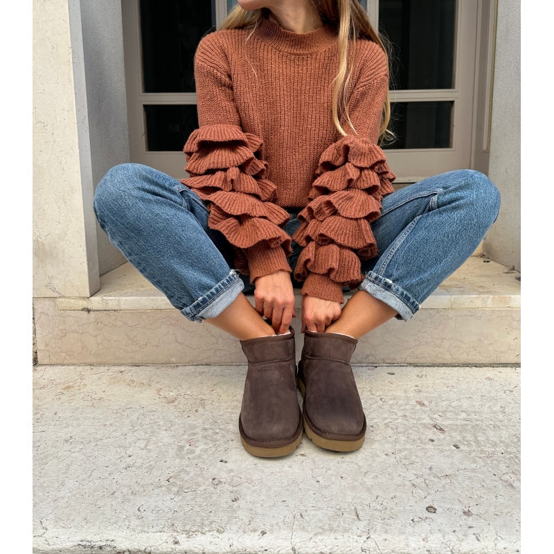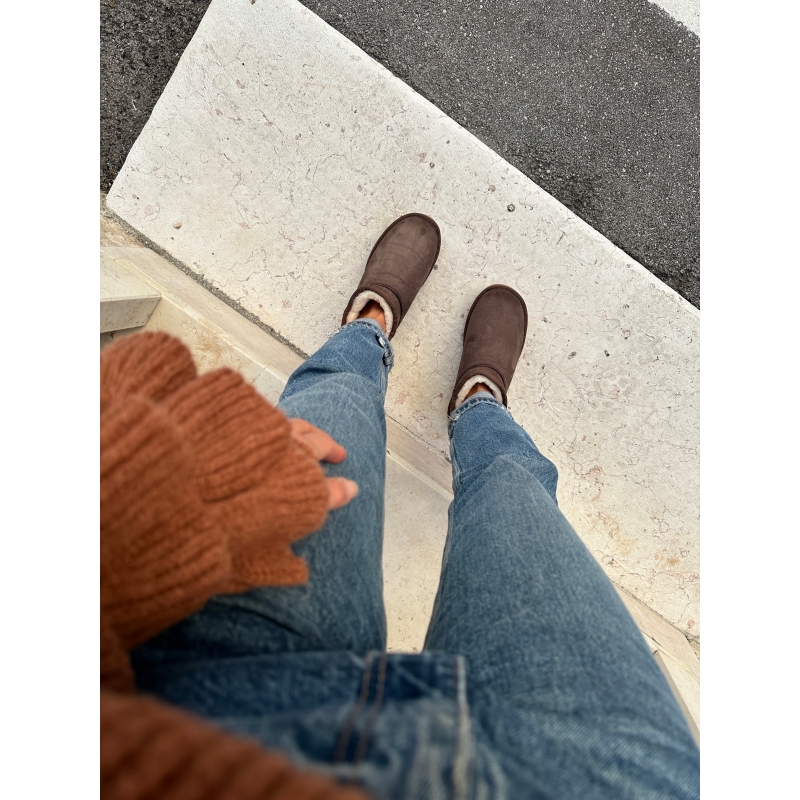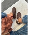 Botines de felpa marrón oscuro con relleno de piel sintética