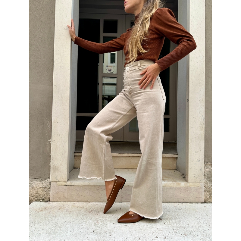 Zapatos bajos color piel con tachas doradas, modelo que cubre la zona de la puntera