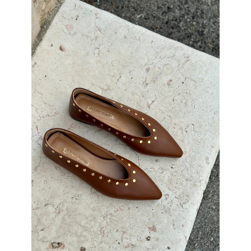 Bailarina vegana con tachuelas redondas doradas, ecológica.