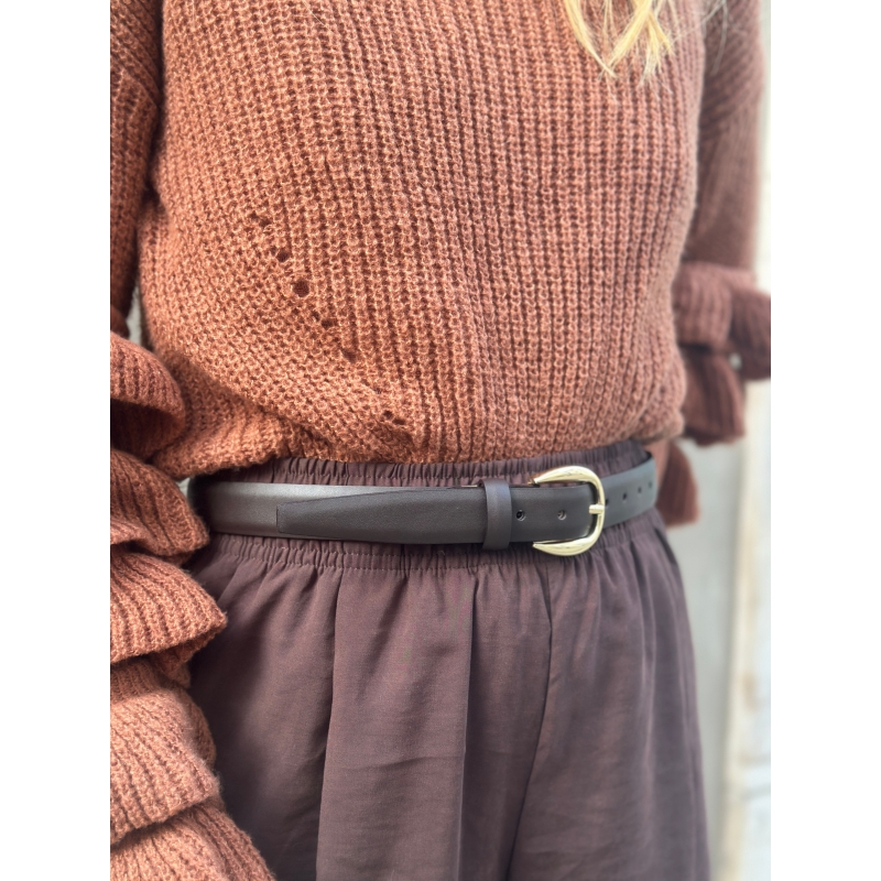 Cinturón elegante de mujer en color marrón oscuro.