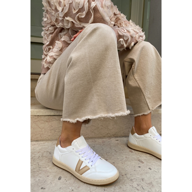 Zapatillas blancas ecológicas para mujer con suela beige