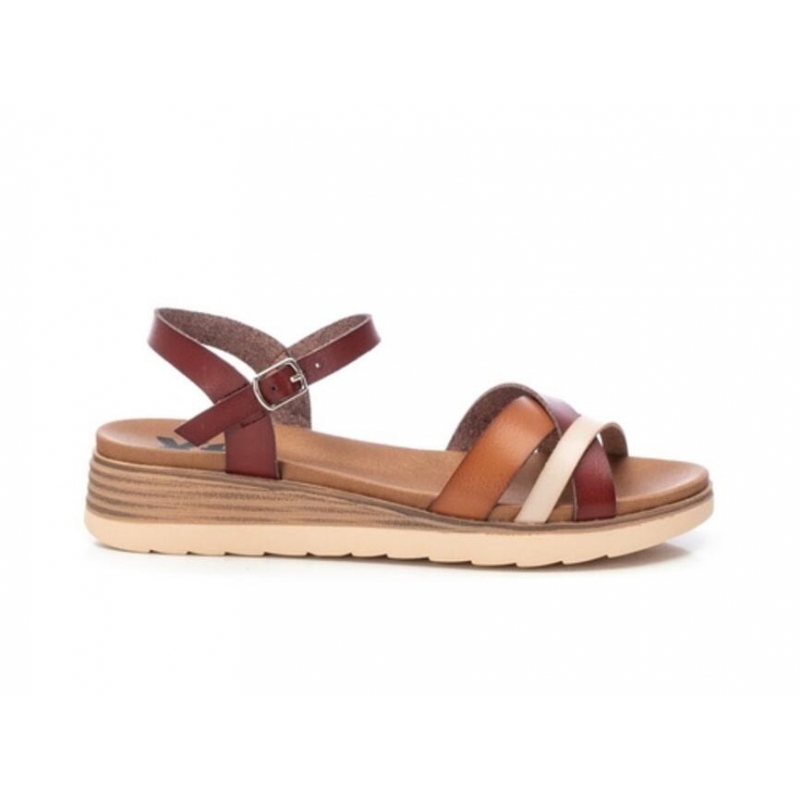 Sandalias de cuña para mujer en color piel con tiras cruzadas