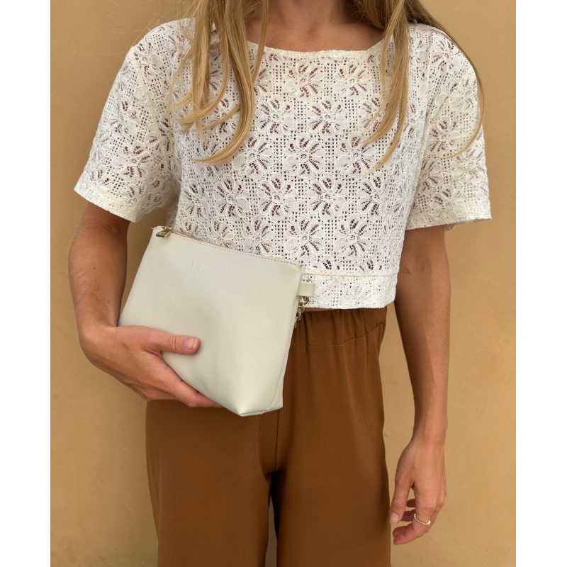 Pochette couleur glace avec fermeture zippée et chaîne dorée