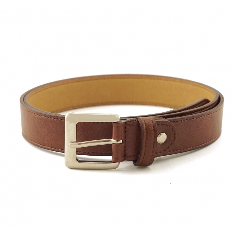 Ceinture fine en cuir teinté écologique avec boucle carrée argentée