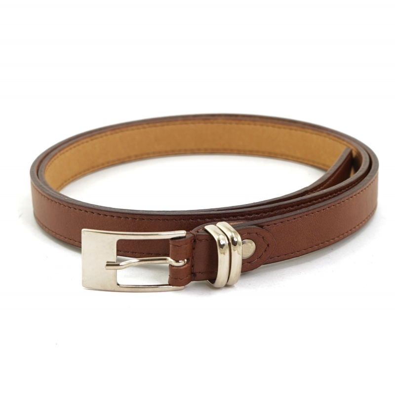 Ceinture fine écologique couleur cuir avec boucle argentée et double boucle métallique