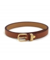 Ceinture fine écologique couleur cuir avec boucle arrondie dorée et double boucle en métal doré